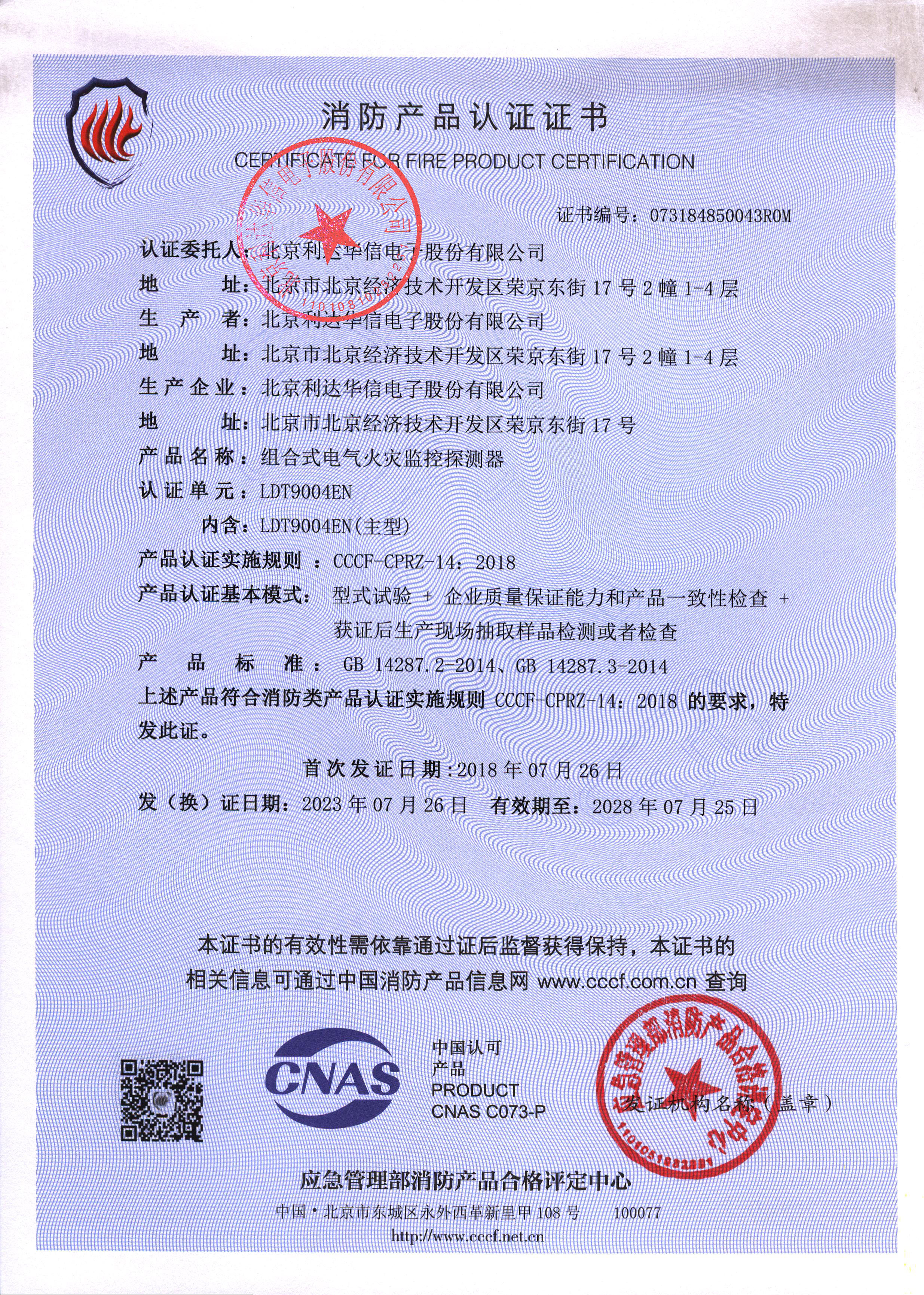 LDT9004EN 組合式電氣火災監控探測器 消防產品認證證書073184850043ROM(蓋公章).jpg